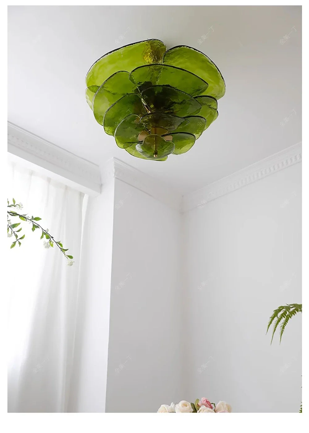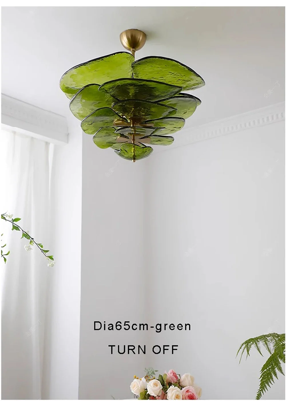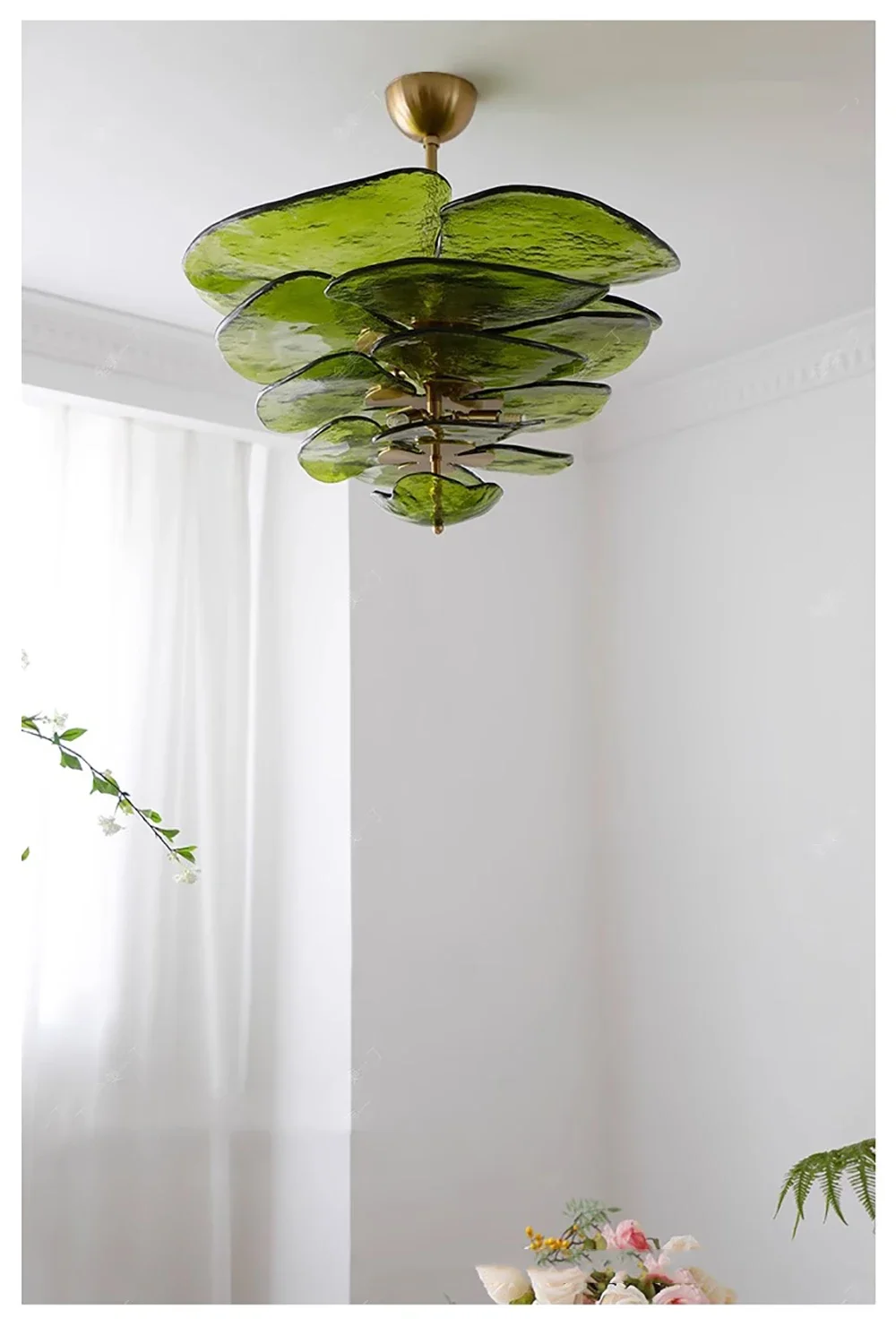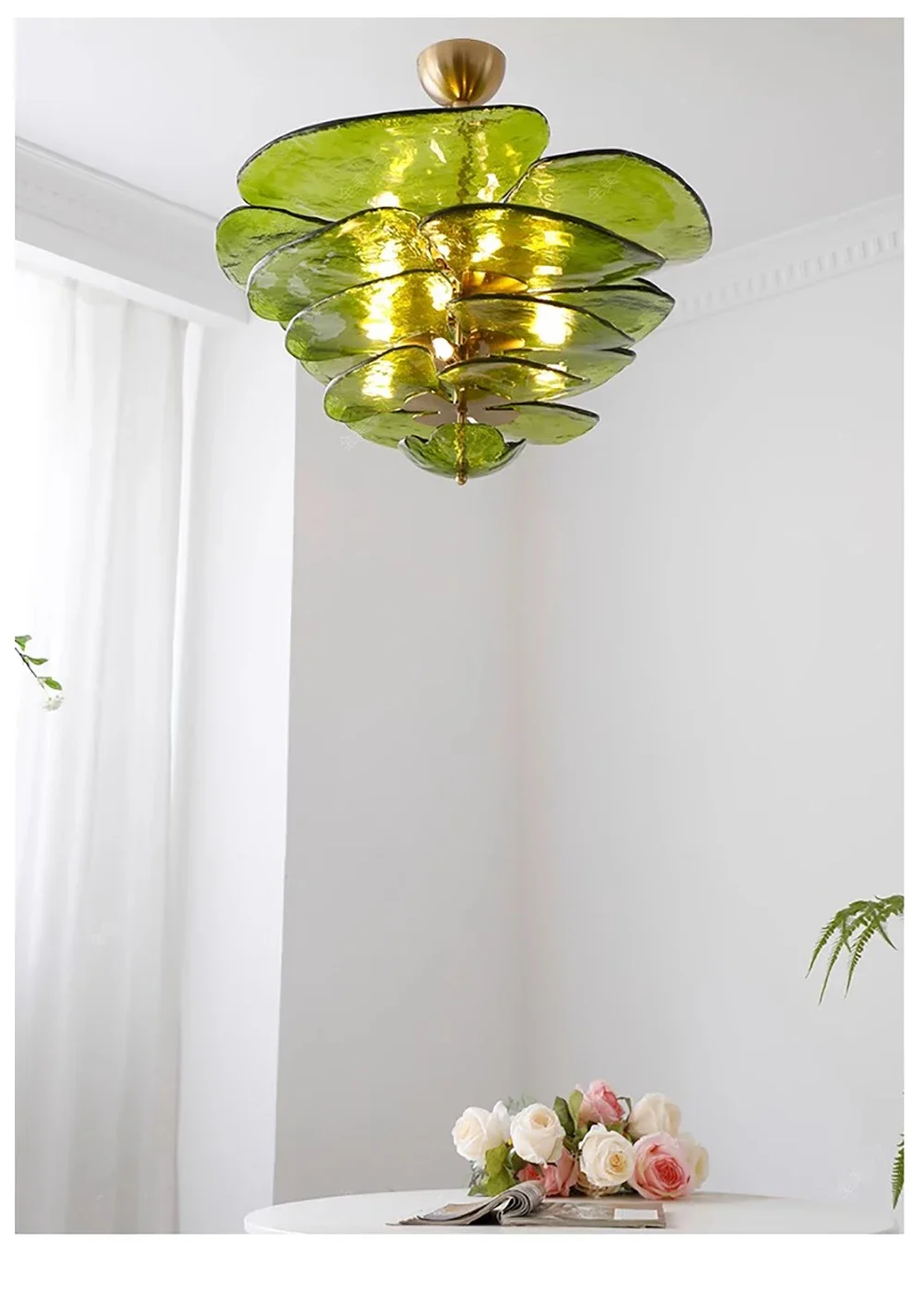 The translucent green opal finish softly diffuses light, producing a warm and atmospheric glow ideal for dining areas, living rooms, bedrooms, or curated commercial spaces. Designed to illuminate 10–15 square meters efficiently, this pendant balances decorative impact with everyday functionality.